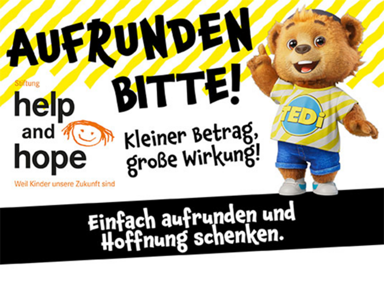 Mit nur wenigen Cents Hoffnung schenken. Das ist ab sofort in teilnehmenden TEDi-Filialen möglich.