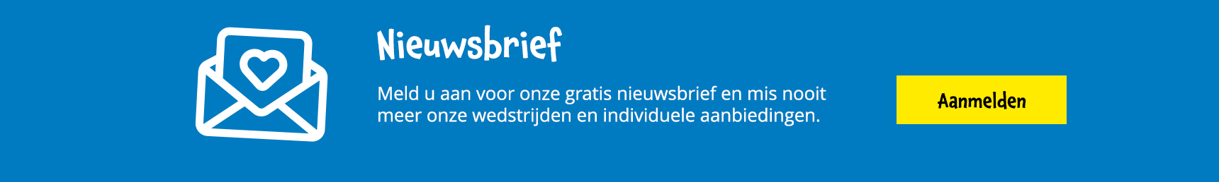 Meld u aan voor onze gratis nieuwsbrief en mis nooit meer onze wedstrijden en individuele aanbiedingen.Aanmelden