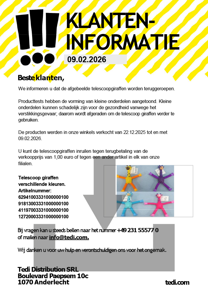 we informeren u dat de afgebeelde telescoopgiraffenworden teruggeroepen.