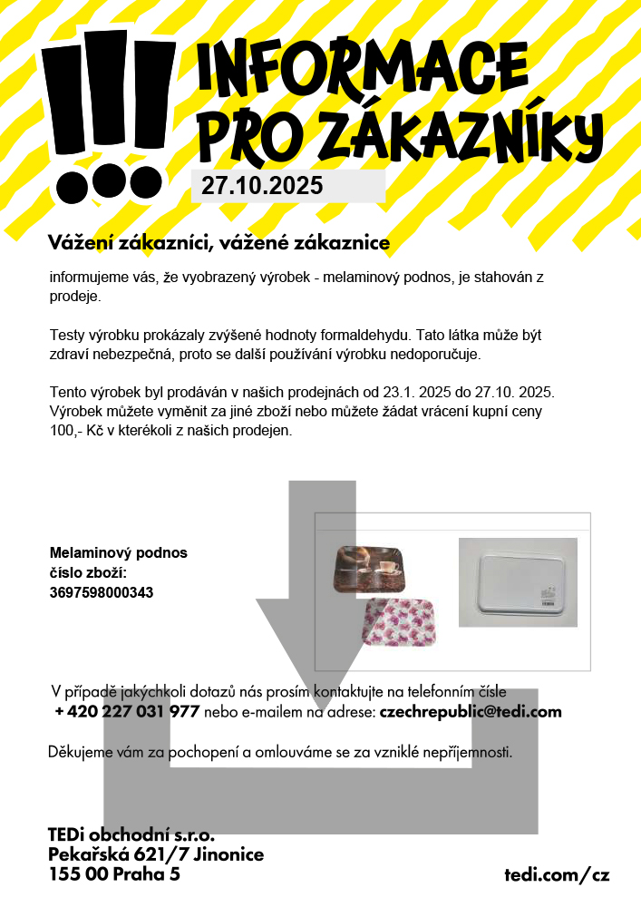 I přes obsáhlé kontroly managementu kvality společnosti TEDi a externích zkušebních institutů může dojít k tomu, že se do prodeje dostává zboží, které neodpovídá našim přísným požadavkům na kvalitu. Může vzniknout také případ, že se poškodí zakoupené zboží při přepravě, a že příslušné zboží odstraníme krátkodobě z programu.