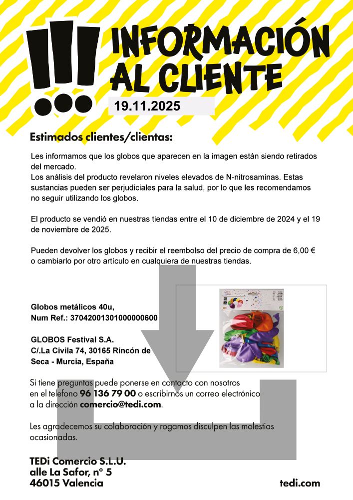 les informamos que los globos que aparecen en la imagen están siendo retirados del mercado.