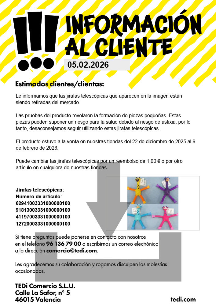 le informamos que las jirafas telescópicas que aparecen en la imagen están siendo retiradas del mercado.
