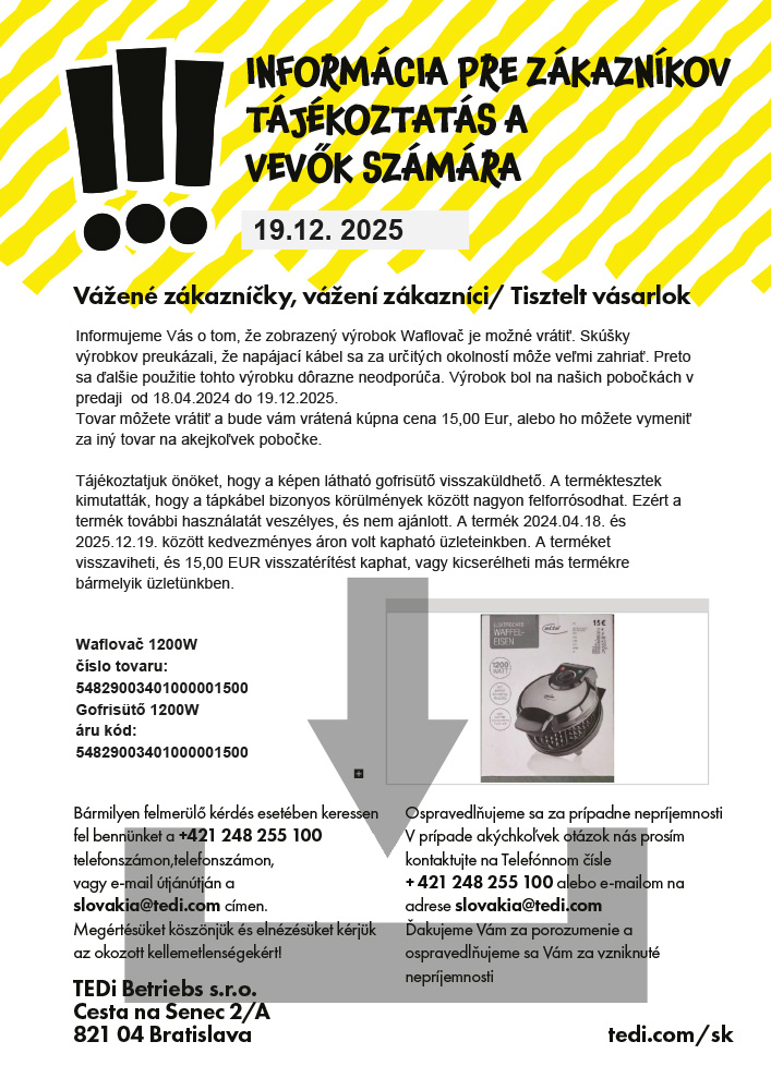 Informujeme Vás o tom, že zobrazený výrobok Waflovač je možné vrátiť.