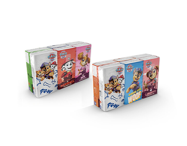 6 Packungen, 9 Tücher pro Packung, verschiedene Designs, je