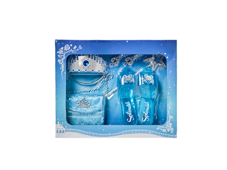 7-teilig, bestehend aus 1 Paar Schuhe, 1 Krone, 1 Paar Ohrringe, 1 Prinzessinenstab und 1 Tasche, verschiedene Designs, je