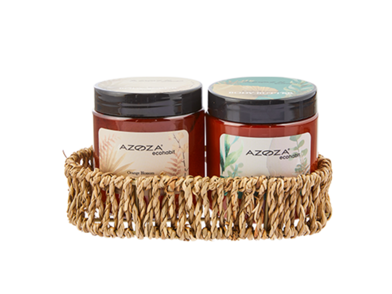 mit Körbchen, 2er-Set, Bodyscrub Orange Blossom (250 g) - Bodybutter Jasmin & Lavender (250 g), je